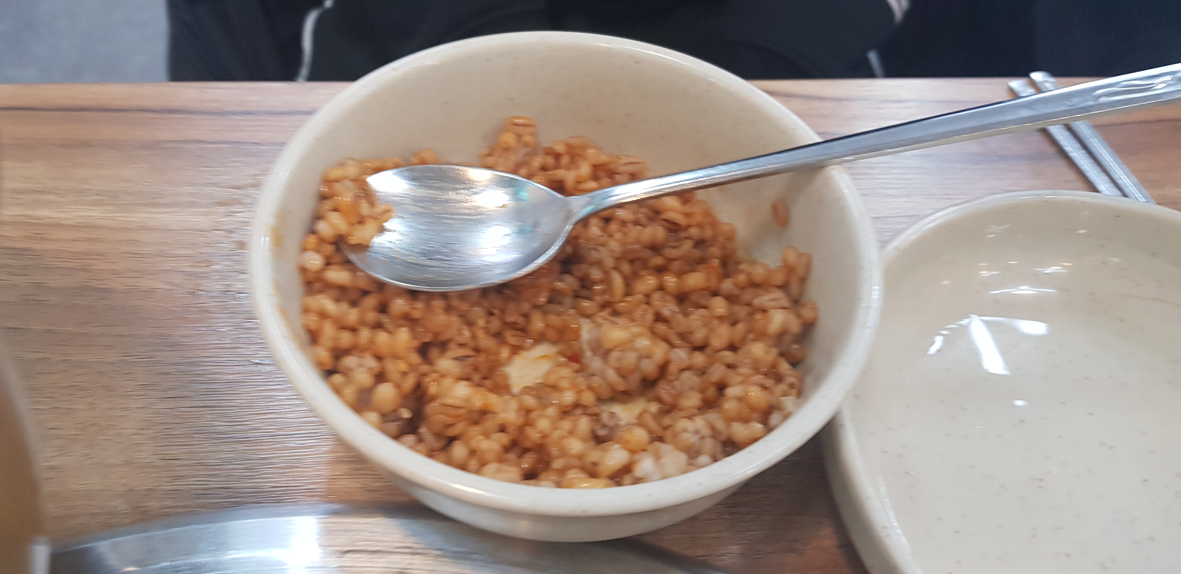 이게 이집에서 준다는 보리밥. 진짜 꽁보리밥이다. 식전에 간단하게 먹기 좋다.